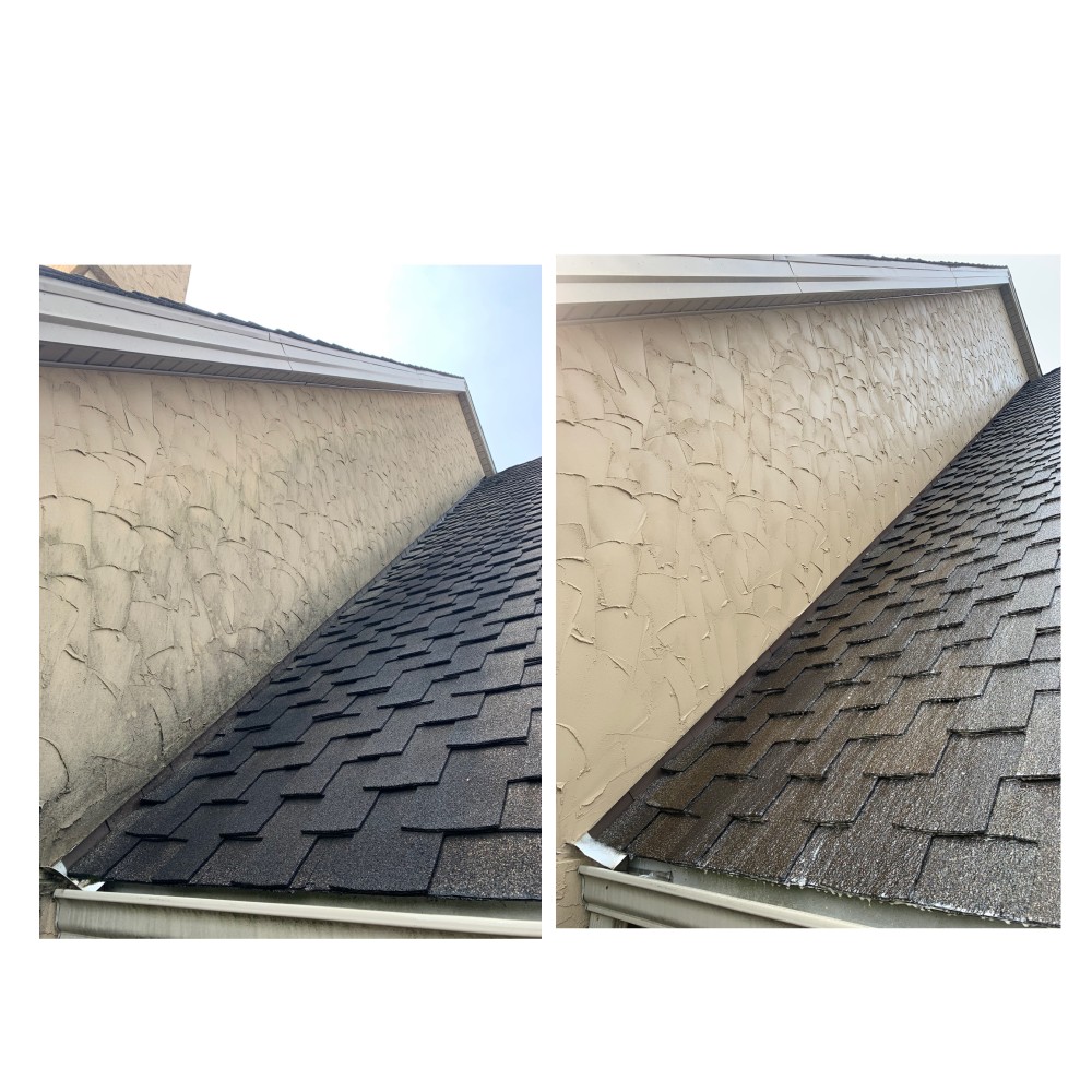 In addition to the stucco, we also removed black streaks and discoloration from multiple sections of the roof using our proven soft wash roof cleaning process. The transformation was dramatic, and the property looks refreshed and renewed!