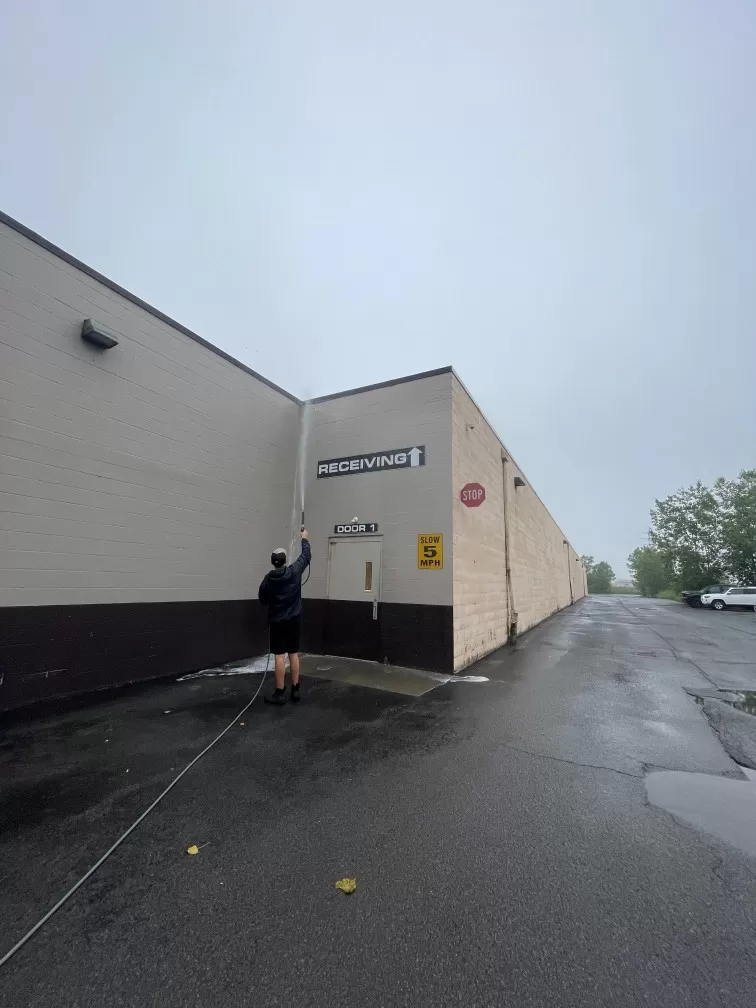 Using a combination of soft washing and power washing techniques, we removed layers of dirt, grime, and cobwebs—restoring a clean and welcoming entrance for their valued customers.